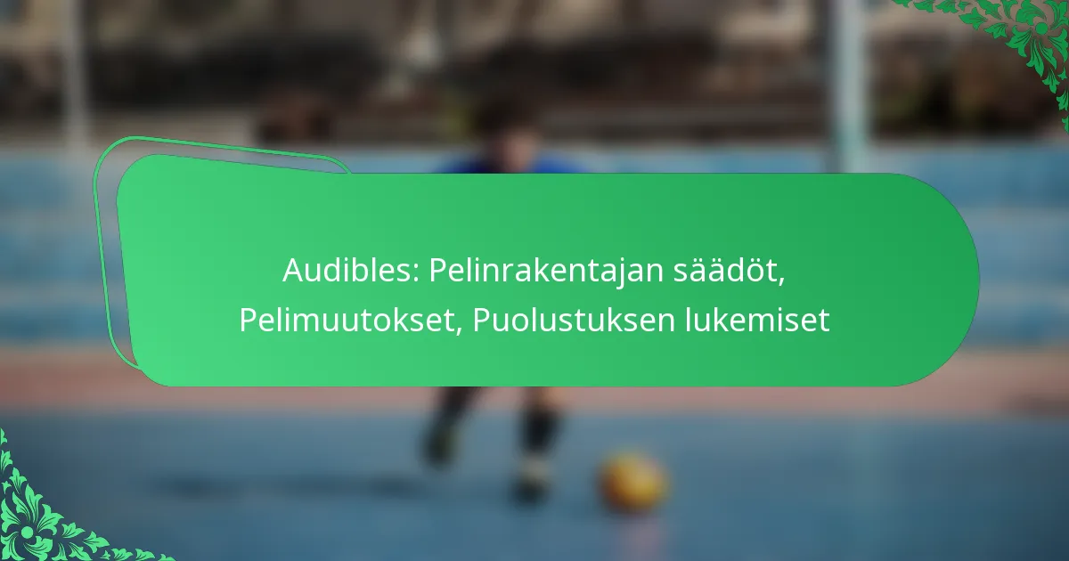 Audibles ovat sanallisia tai ei-sanallisia signaaleja, jotka mahdollistavat pelinrakentajien muuttaa alkuperäistä peliä puolustuksen arvioinnin jälkeen. Tämä säätö voi sisältää pelityypin, pelin suunnan tai jopa kentällä olevien pelaajien vaihtamisen. Audiblesin merkitys piilee niiden kyvyssä hyödyntää puolustuksen heikkouksia, parantaa hyökkäyksen tehokkuutta ja lisätä onnistumisen mahdollisuuksia tietyssä pelissä.