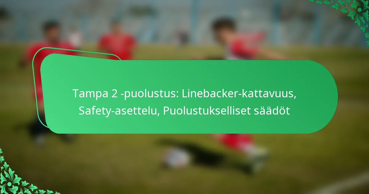 Tampa 2 -puolustus on strateginen aluepeittojärjestelmä, joka erottuu passipuolustuksessa samalla kun se tarjoaa vahvaa juoksutukea. Tämän järjestelmän keskiössä ovat kaksi syvää safetya ja keskimmäinen linjapelaaja, joka kattaa väli-alueita, mikä mahdollistaa tehokkaat säädöt erilaisia hyökkäystaktiikoita vastaan. Linjapelaajat keskittyvät tiettyihin alueisiin sen sijaan, että seuraisivat yksittäisiä pelaajia, mikä vaatii vahvaa viestintää vastaanottajien reittien estämiseksi, kun taas optimaalinen safetyn sijoittuminen parantaa peittoa sekä lyhyitä että syviä uhkia vastaan.