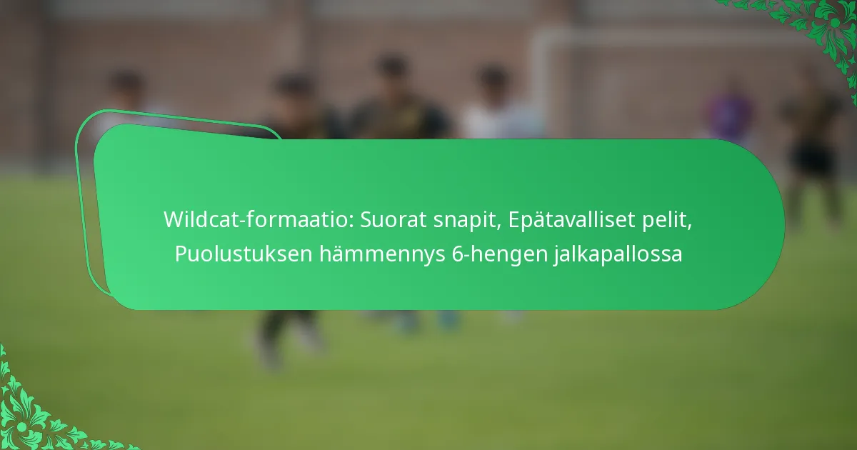 Wildcat-formaatio 6-hengen jalkapallossa on hyökkäysstrategia, joka hyödyntää suoria snappeja juoksijalle tai muulle taitopelaajalle perinteisen pelinrakentajan sijaan. Tämä epätavallinen lähestymistapa pyrkii luomaan hämmennystä puolustajien keskuudessa ja hyödyntämään epätasapainoa kentällä.
